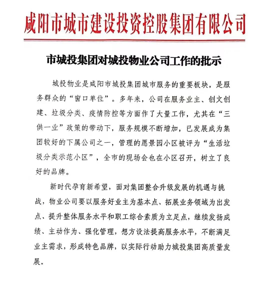 會(huì)議開始前,王雅玲宣讀《市城投集團(tuán)對(duì)城投物業(yè)公司工作的批示》。批示中指出,多年來(lái),城投物業(yè)在服務(wù)業(yè)主、創(chuàng)文創(chuàng)建、垃圾分類、疫情防控等方面作了大量的工作,尤其在“三供一業(yè)”政策的帶動(dòng)下,服務(wù)規(guī)模不斷增加,已成為集團(tuán)較好的下屬公司之一,樹立了良好的品牌。希望城投物業(yè)在今后的工作中,繼續(xù)發(fā)揚(yáng)成績(jī)、主動(dòng)作為、強(qiáng)化管理,想方設(shè)法提高服務(wù)水平,以實(shí)際行動(dòng)助力城投集團(tuán)高質(zhì)量發(fā)展。