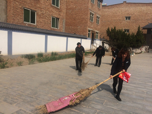早上九時許,志愿者們排著整齊的隊伍來到了烈士陵園。在工作人員的主持下,志愿者們先向長眠于此的烈士敬獻了花環(huán),隨后默哀一分鐘,以示對烈士最崇高的敬意。接著志愿者們跟隨工作人員的指引環(huán)繞英雄紀念碑一周,瞻仰咸陽狙擊戰(zhàn)的革命事跡,緬懷革命先烈的豐功偉績。最后,志愿者們分工協(xié)作,對陵園進行了徹底的衛(wèi)生清潔。