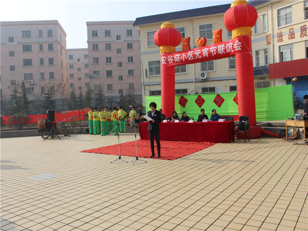 (信息員:董麗娜)222日,正月十三,城投物業(yè)安谷苑小區(qū)物業(yè)中心在小區(qū)中心廣場舉辦了元宵節(jié)聯(lián)誼會(huì)。咸戶北路社區(qū)主任梁波,陳陽辦事處主任劉英,小區(qū)項(xiàng)目部領(lǐng)導(dǎo)趙培生,小區(qū)業(yè)主代表?xiàng)钪静、董超龍以及物業(yè)公司副總魏述剛和各部門負(fù)責(zé)人出席了本次活動(dòng)。