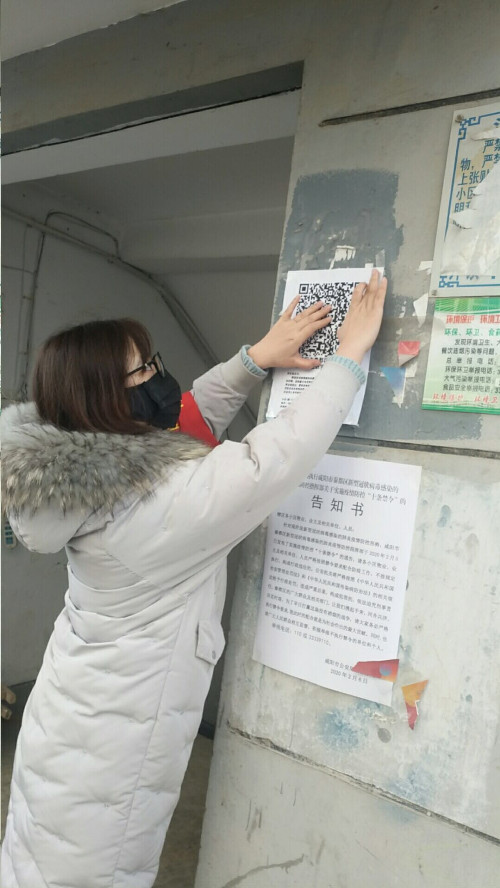 志愿者在每棟樓單元門口張貼信息填報(bào)二維碼