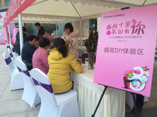 3月8日下午,城投物業(yè)愿景園小區(qū)聯(lián)合浙商銀行開(kāi)展“春風(fēng)十里•不如有你”主題女神嘉年華活動(dòng),為業(yè)主送去節(jié)日祝福。